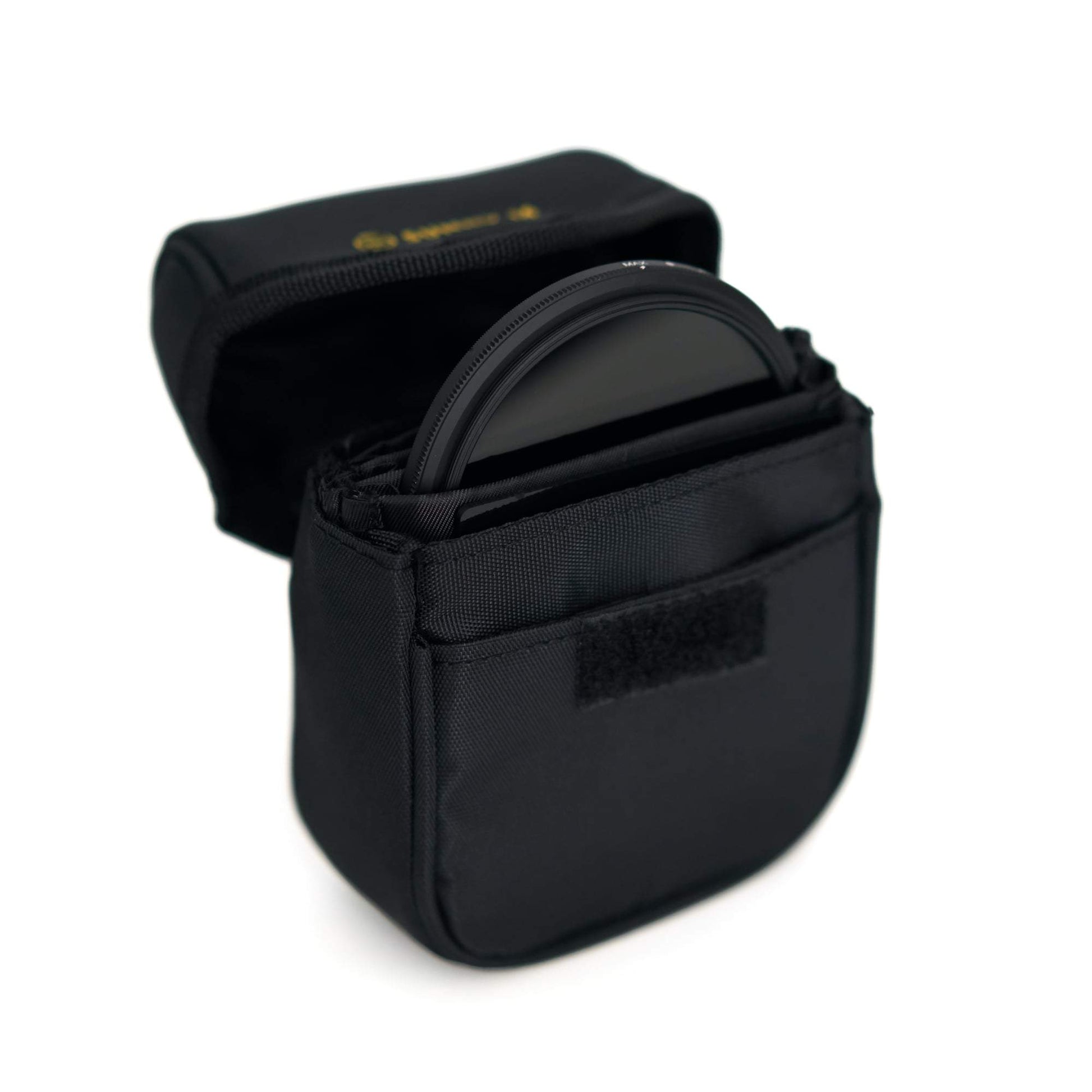 This lens filter pouch can store up to 5 filters (up to 86mm circle filters and 4" x 4" square filters). It also includes extra space to fit your additional accessories, i.e. lens cloth, SD cards, etc.