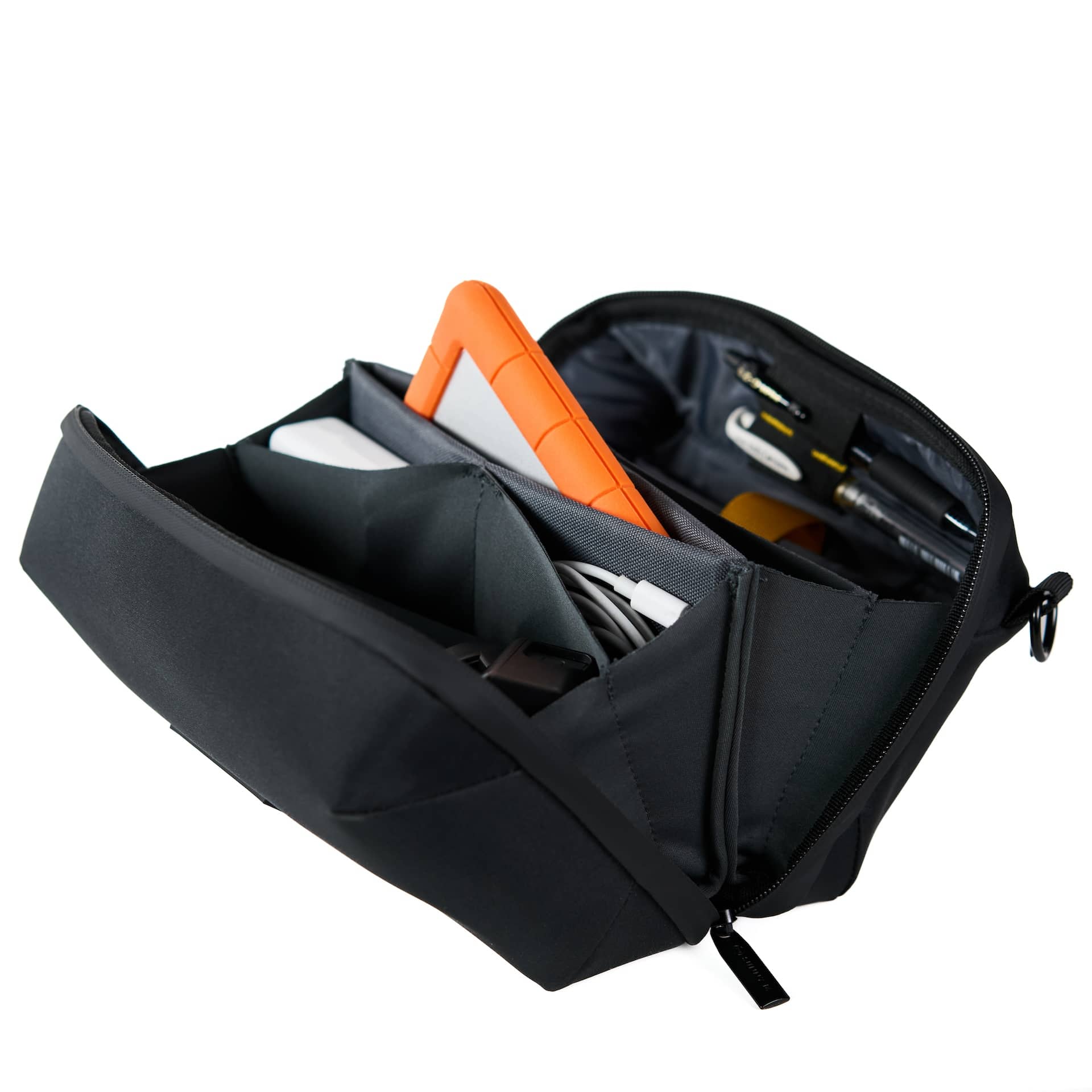 Everything has a spot — easily fit your airpods, charger, SD cards, batteries and more.