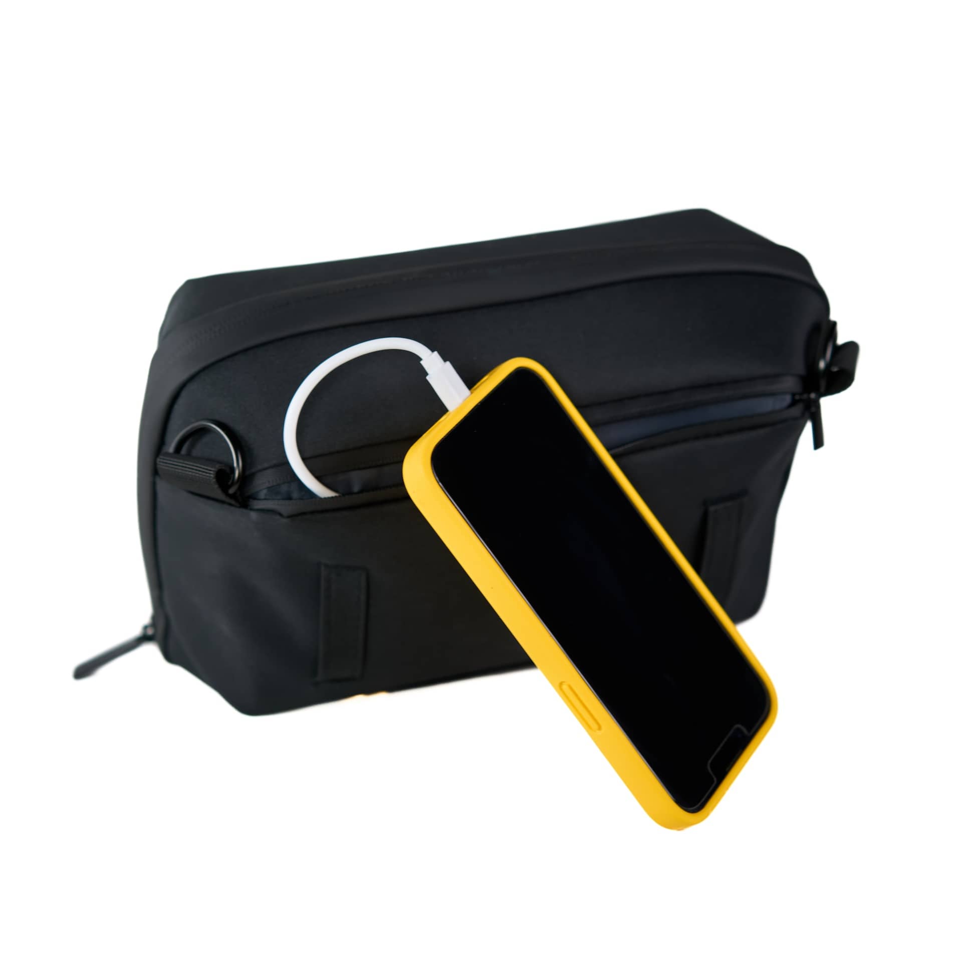 We've designed the cable passthrough with care so you can charge your devices on the go. The exterior pocket can fit your phone, passport, or any smaller items.