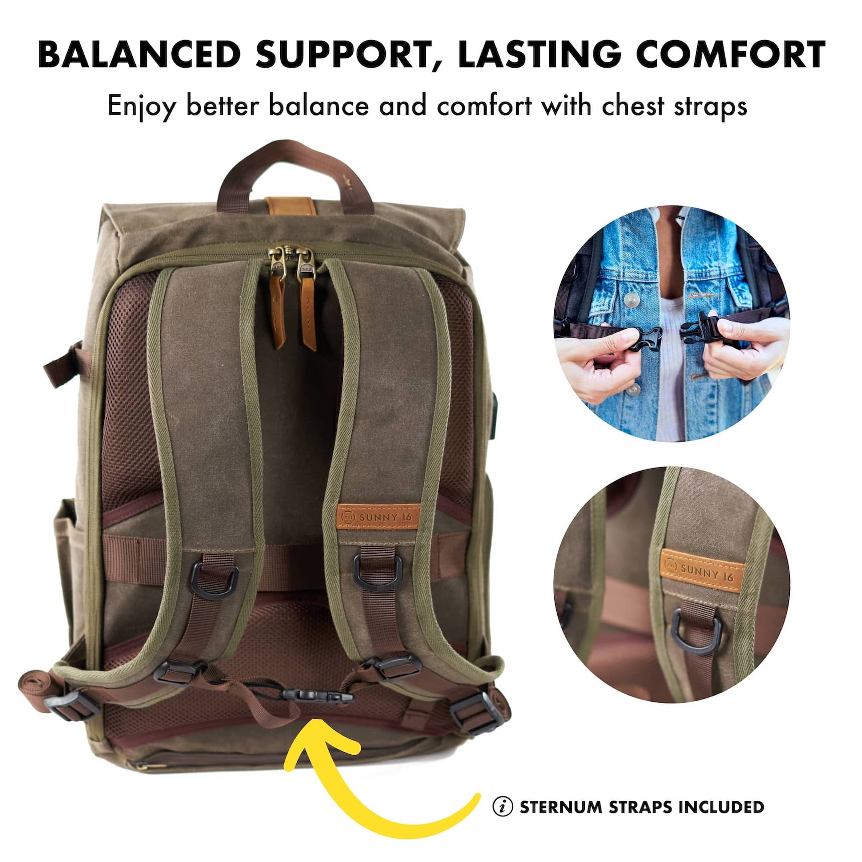The sternum straps adds more balance and support when you've packed your bag to the brim. Just tighten and clip!