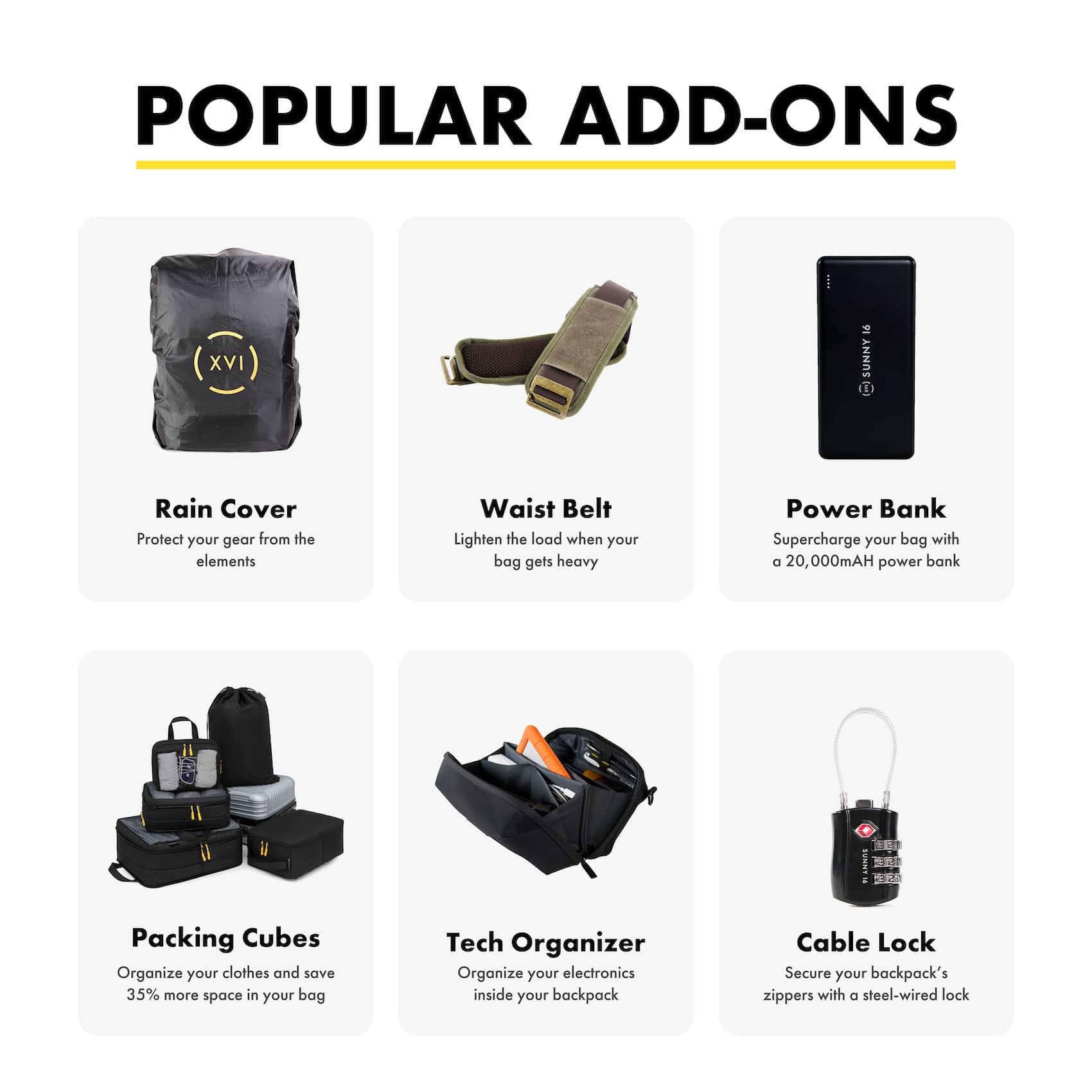 Yes! We include one free set of camera bag dividers inside every camera backpack. In addition to that, we've also included free tripod straps and a free USB cable to charge your electronics (just connect it to a power bank).