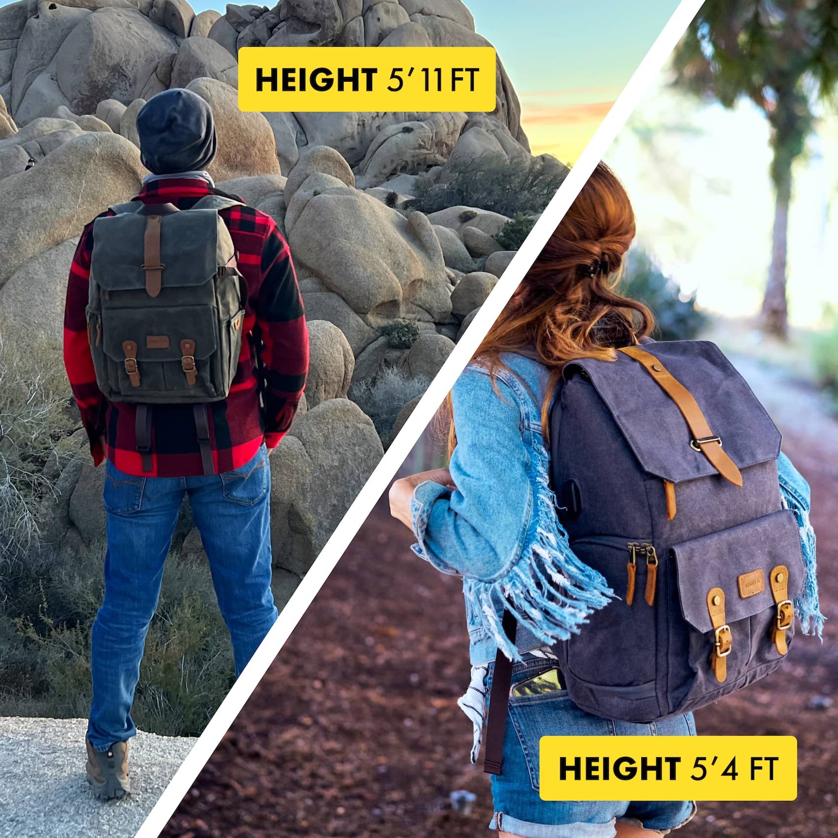 Crafted from tough, water-resistant waxed canvas material and 1000D tarpaulin, this backpack can take on rain, dirt, and whatever else your next adventure throws at it.