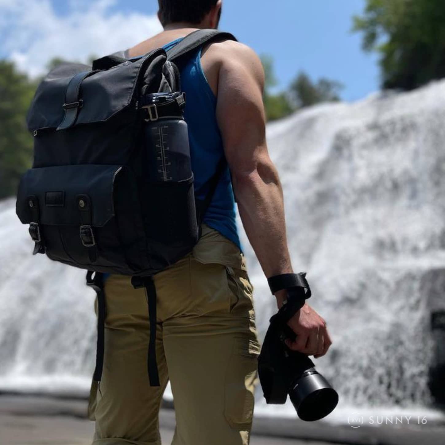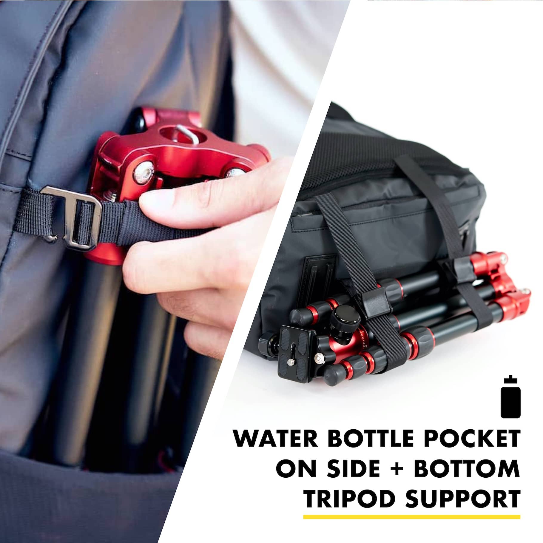 Strap your tripod on the side of your backpack, or on the bottom. Use our buckle hardware to securely fasten it.