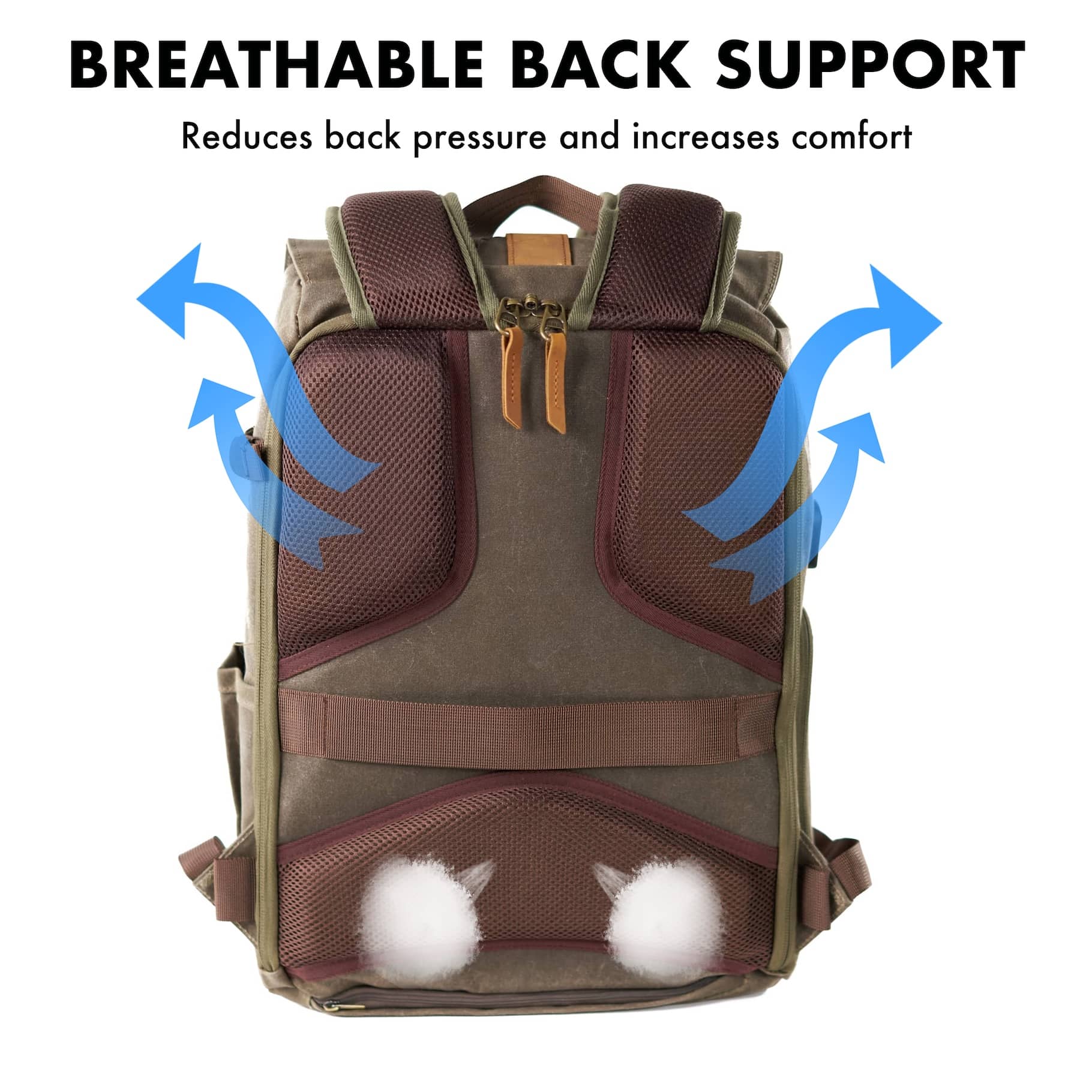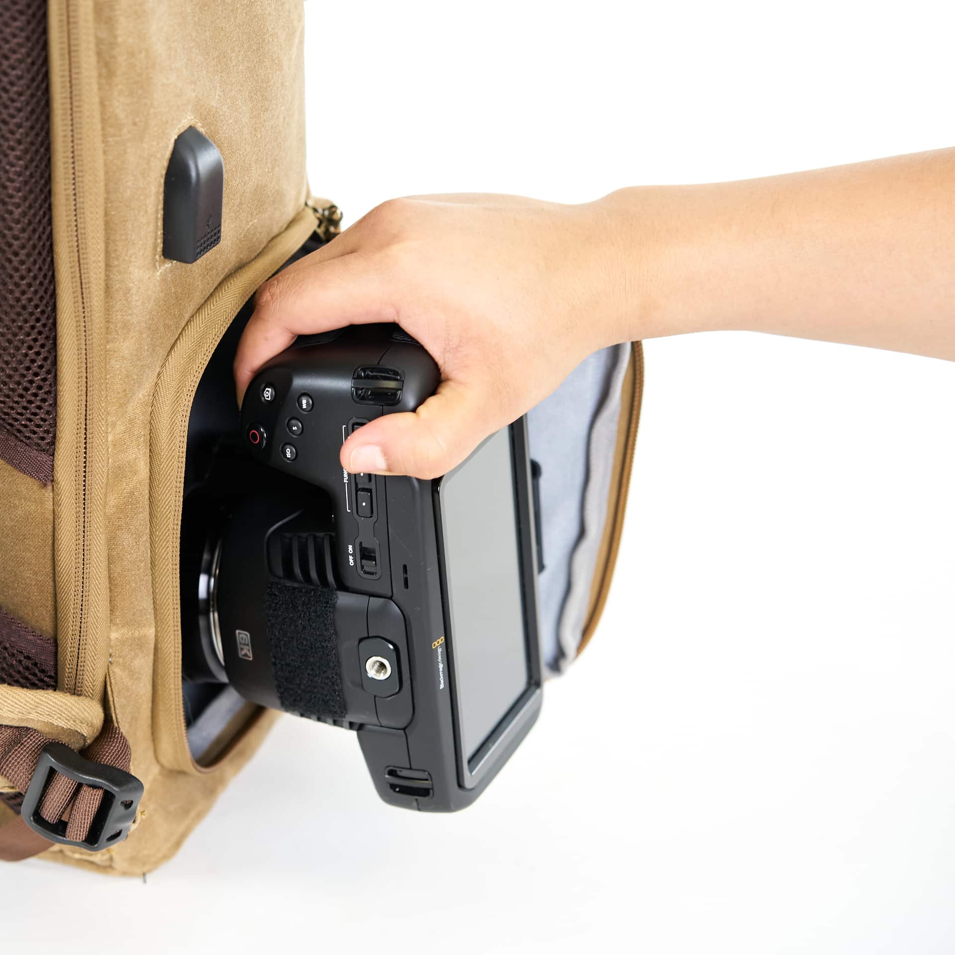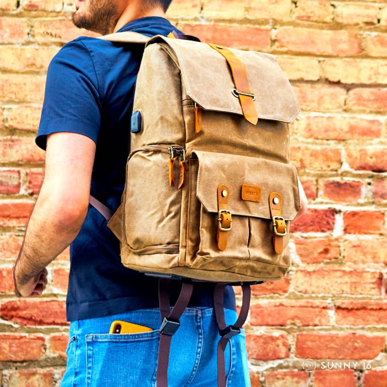 Yep, the waxed canvas material is water-resistant so it can handle a good amount of water, heavy wind, etc. Just don't dunk your backpack in a river and you should be good. The black tarpaulin version features 1000D tarpaulin which is the highest quality waterproof material that will keep your camera equipment safe.