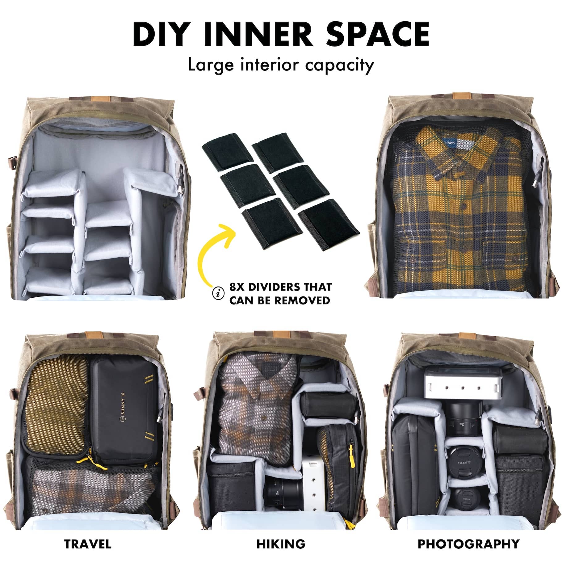 Better Organization: The camera backpack that is endlessly customizable with modular, soft padded dividers that will keep your gear safe and organized. It also includes a dedicated, protective sleeve in the main compartment for your 16" laptop or tablet.