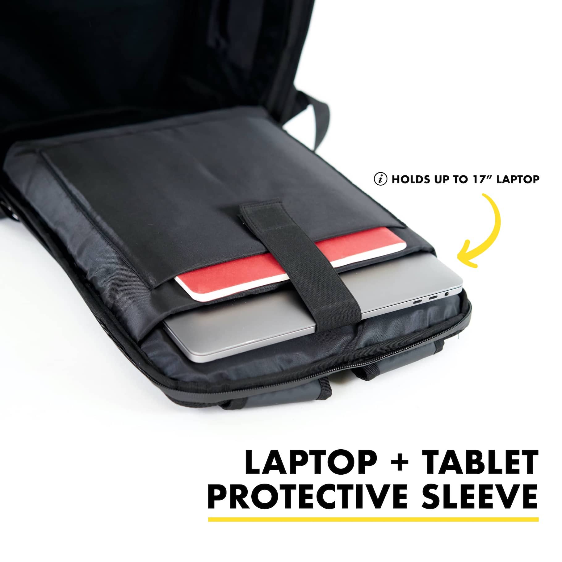 - Laptop sleeve fits a 17" Macbook Pro and is checkpoint friendly