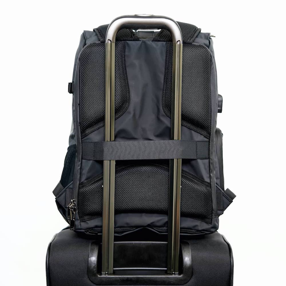 The backpack comes with a built-in USB cable that you can directly plug your power bank into from the interior of the bag.