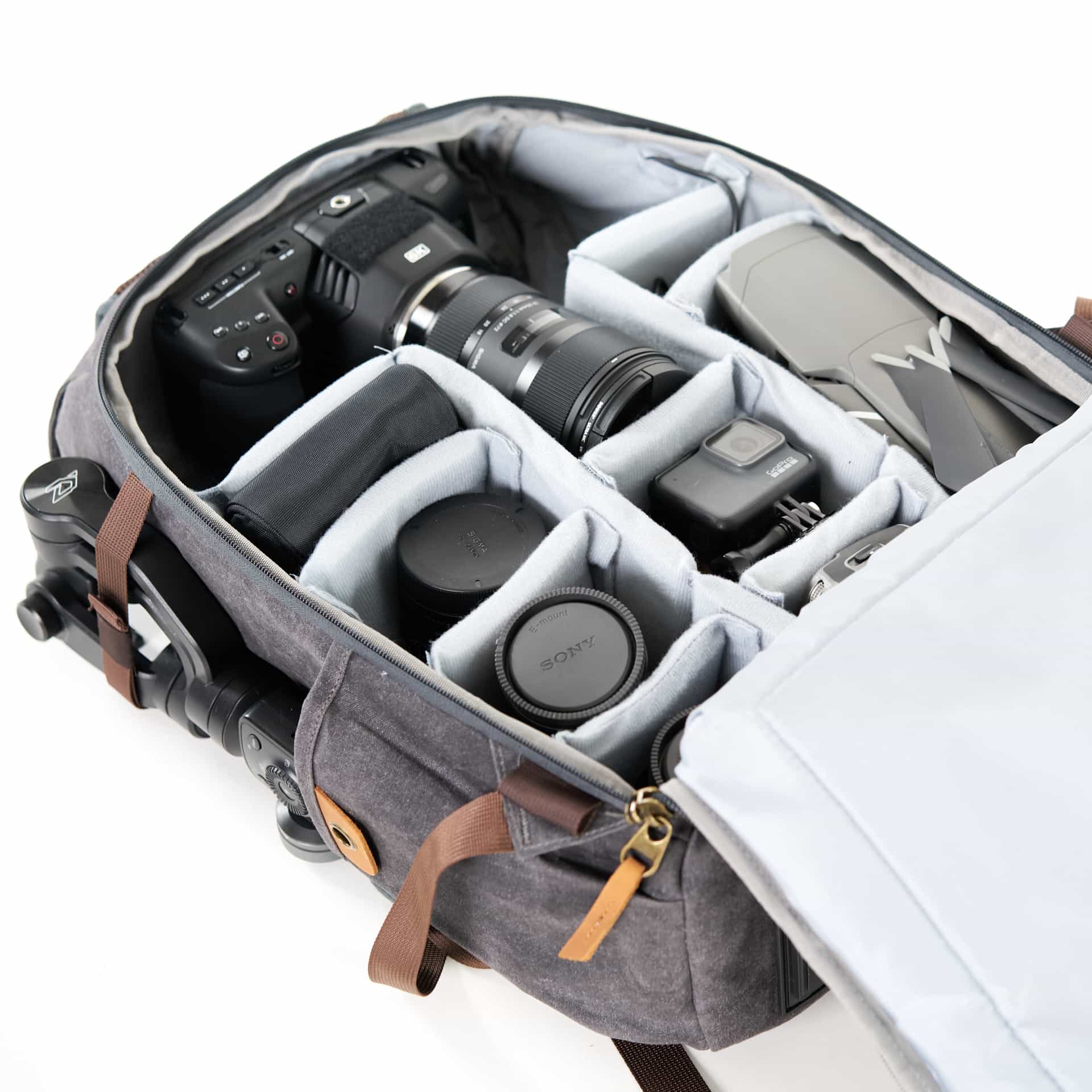 - Fits 2-3 cameras, up to 7 lenses, tripod, and 17" laptop